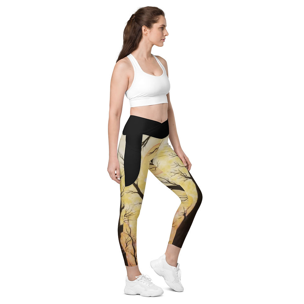 tree, birch tree Crossover leggings with pockets, active wear, festival leggings